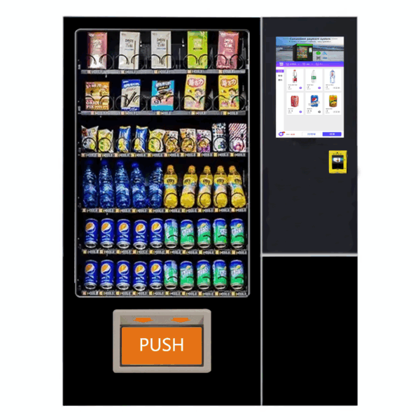 Specification Details Product Name Outdoor Combo Vending Machine with Rain Shelter Dimensions 1950mm (H) × 1450mm (W) × 950mm (D) Capacity 450–550 items (mixed snacks and beverages) Structure Built-in rain shelter, waterproof and sun-resistant shell Display 21.5” HD Touchscreen Payment Methods Coin, Cash, QR Code, NFC, Credit Card Temperature Range 2°C – 10°C…