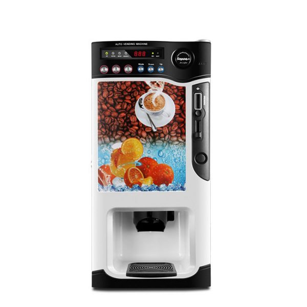 Power supply: AC 220V 50/60Hz(Heating:820W Cooling: 150W) Available coin: Intelligent coin recognizer Drink supply: 3 hot drinks, 3 cold drinks The capacity of raw material bucket: 1600g*3 Cup size: 73-74mm, 6.5oz or 8oz Cup quantity: 80pcs Water supply: Inner water bucket of 4.3L, and placing purified water tank of 18.9L on the top of the…